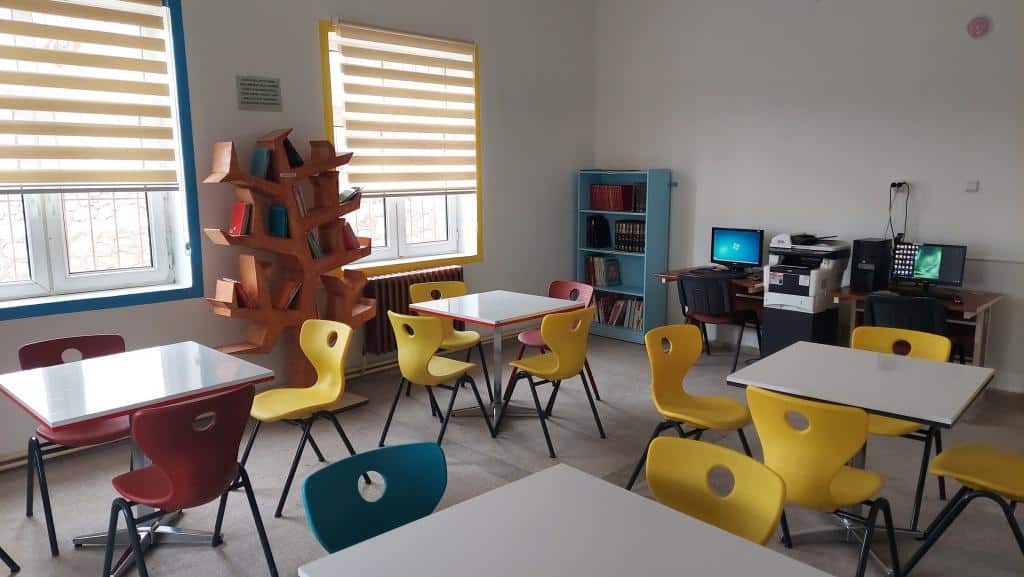 Okul kütüphanemiz yeni yerinde, yeni masalarıyla ve yeni kitaplarıyla hizmet vermeye başladı.